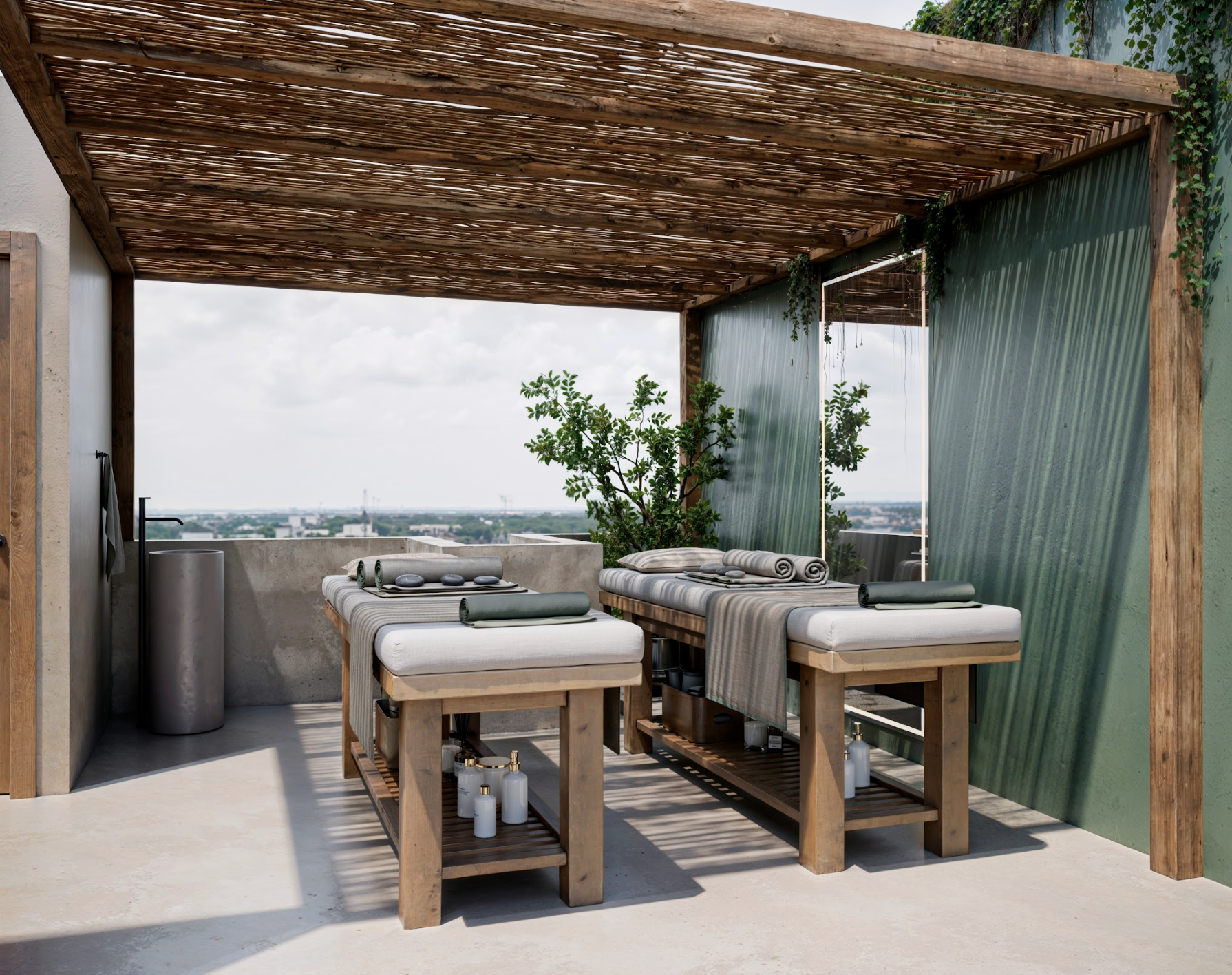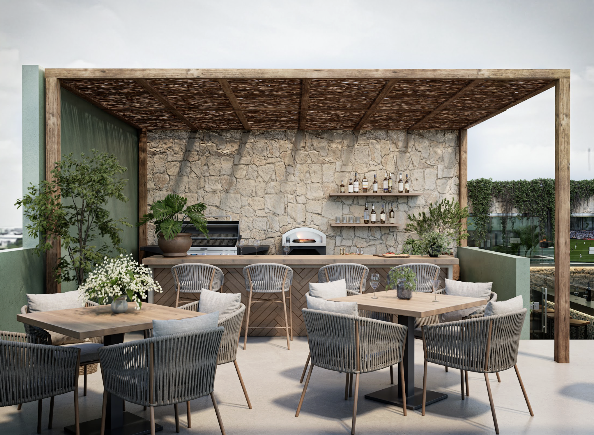 Alberca infinita Jacuzzis Gym Fogatero Camastros flotantes Camas de masaje Área de asadores Lounge zen Bar deportivo Coffee bar Área de lavandería Lobby recepción 24/7 Áreas verdes y jardinería *Los precios pueden cambiar sin previo aviso.