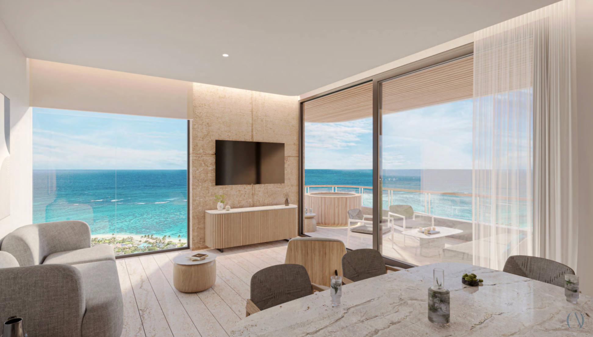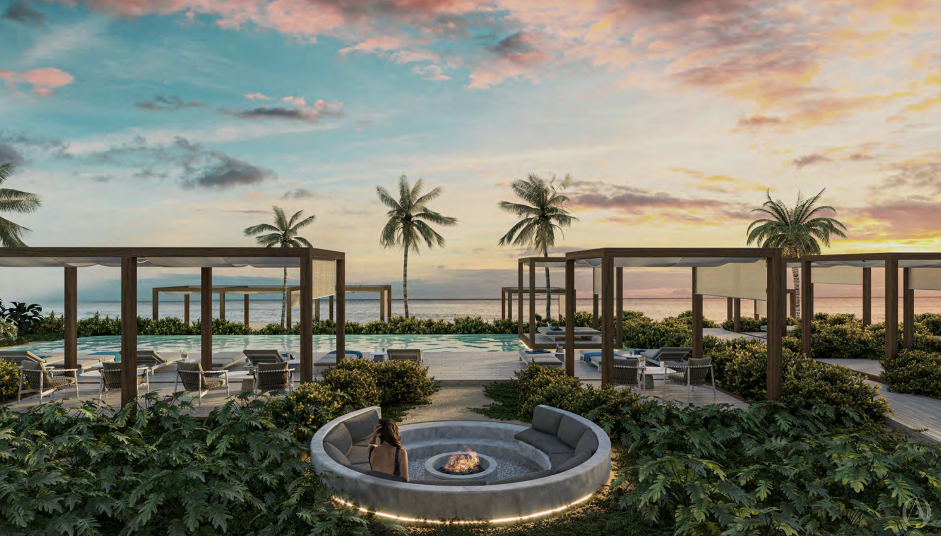 Terraza de Playa, Terraza Sky, Sky Bar, Jacuzzi Piscina de Playa Infinita Cabañas en Playa y en Piscina Cabaña Deportiva de Playa Restaurante De Piscina Gimnasio, Cancha De Pádel, Carril De Natación Tablas De Paddle y Kayaks Fire Pit Coworking Cuarto De Juegos Servicio Al Cuarto, Valet, Recepción, Lobby Bicicletas Eléctricas, Transporte Seguridad 24/7 Preventa con entrega en marzo 2028 *Los precios pueden cambiar sin previo aviso.