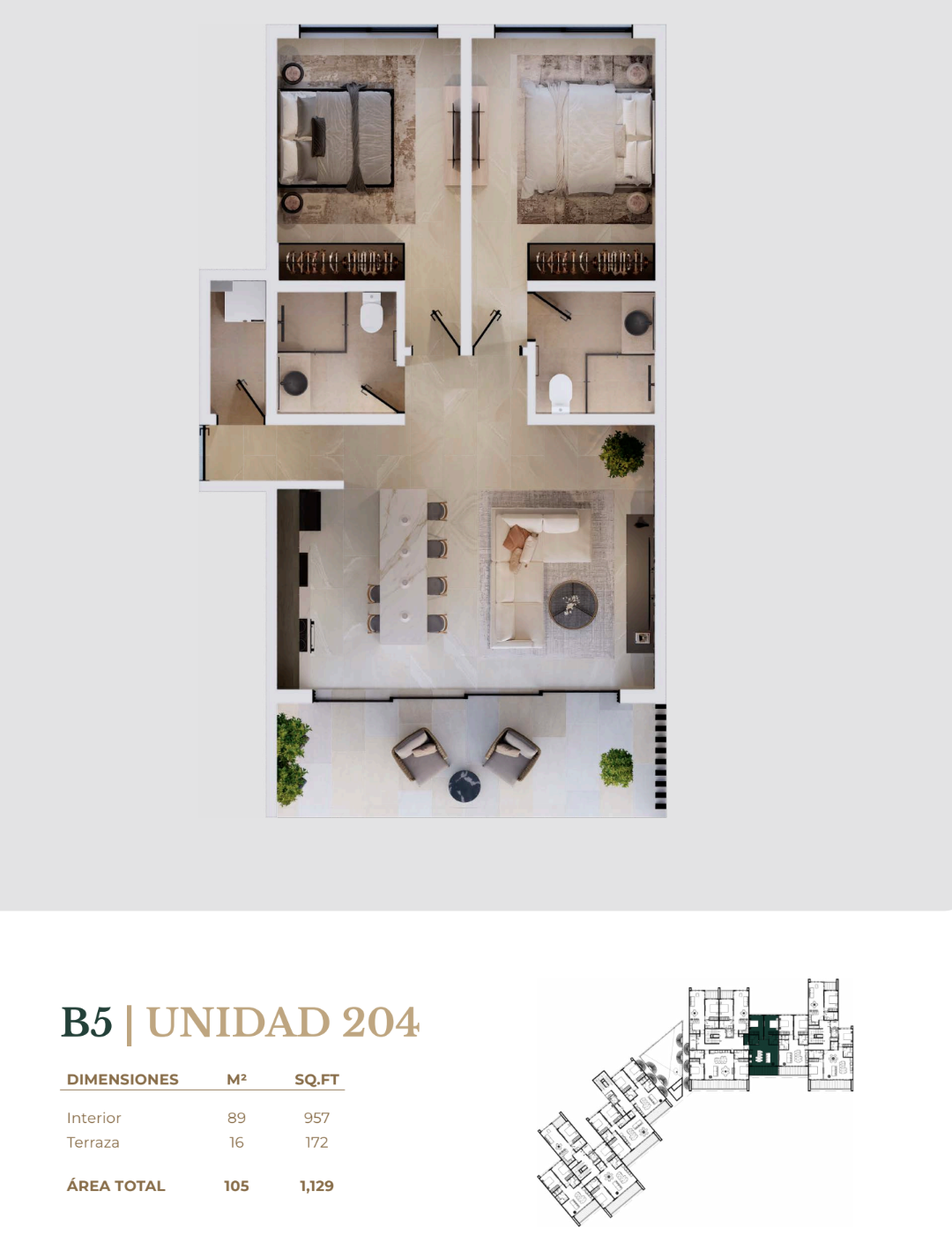 Departamento • 105 m² • 2 Recámaras • Si Estacionamiento