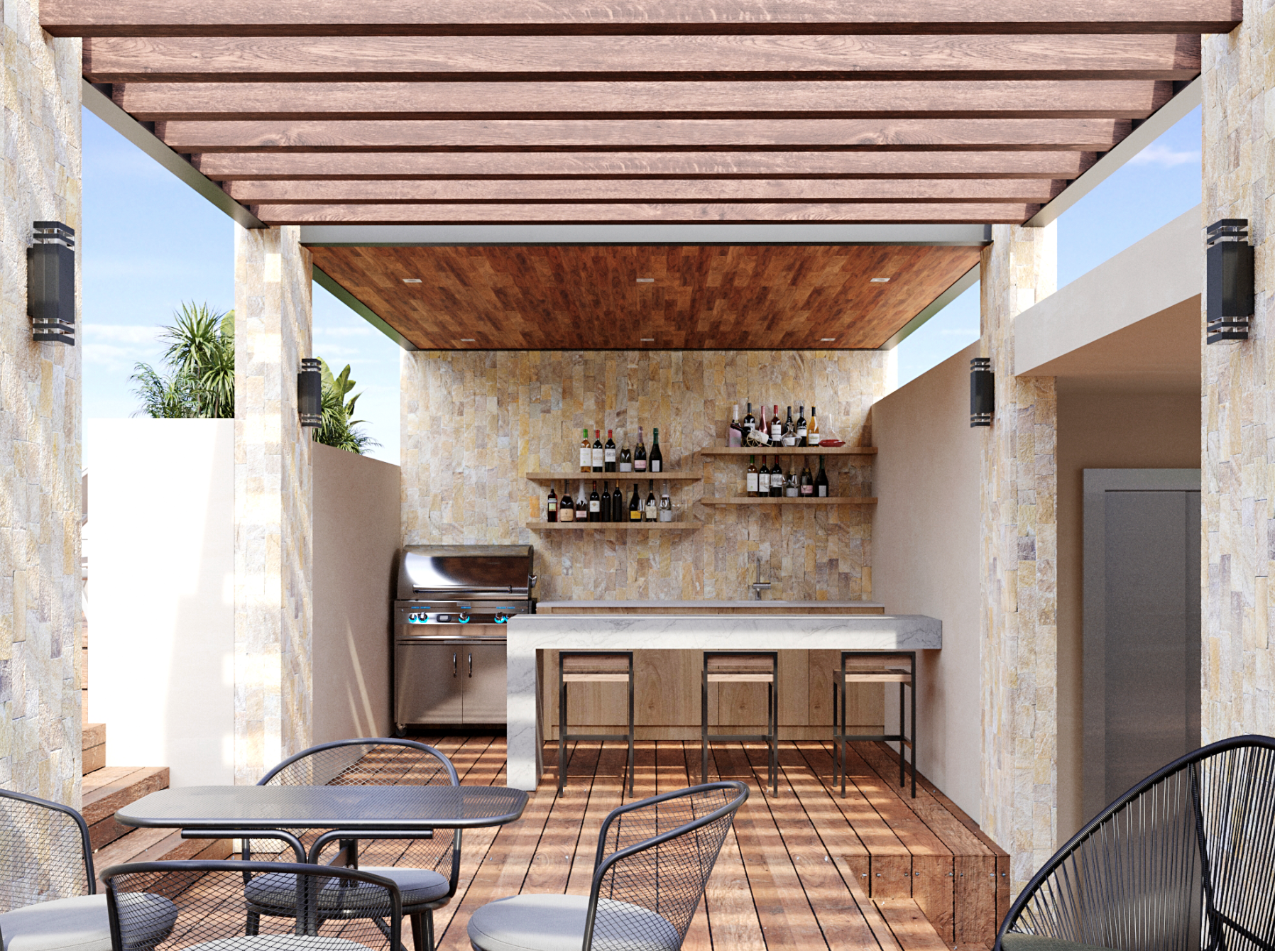Alberca, asoleadero, mirador y sky bar con vista al mar Área de Yoga Jacuzzi Sauna y Spa Gimnasio Asador Zona BBQ Espacio de coworking Recepción y Concierge 24 horas Cerraduras digitales y Smart House Elevador, cámaras de seguridad Lavandería *Los precios pueden cambiar sin previo aviso.