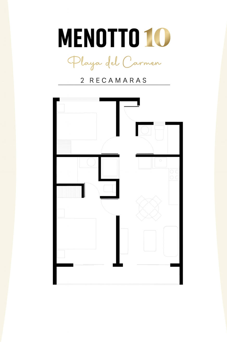 3,619,000 mxn Menotto 10 | 101 Menotto 10 está ubicado a solo dos cuadras de la playa, y a unos pasos de restaurantes, cafés, tiendas y la vibrante Quinta Avenida, donde puedes disfrutar el estilo de vida urbano y costero sin necesidad de usar coche Es un proyecto boutique, lo que crea un ambiente más íntimo, tranquilo y elegante en comparación con desarrollos masivos Las amenidades son de las que realmente se usan: rooftop con vista al mar, área social y alberca, espacios pensados para convivir, recibir visitas o relajarte después de un día de playa EL DEPARTAMENTO El departamento es de 2 recámaras, 1.5 baños, cocina, área de sala- comedor, terraza y está en 3,619,000 mxn Por su ubicación y su concepto, es ideal tanto para vivir como para invertir PREVENTA con entrega septiembre 2027