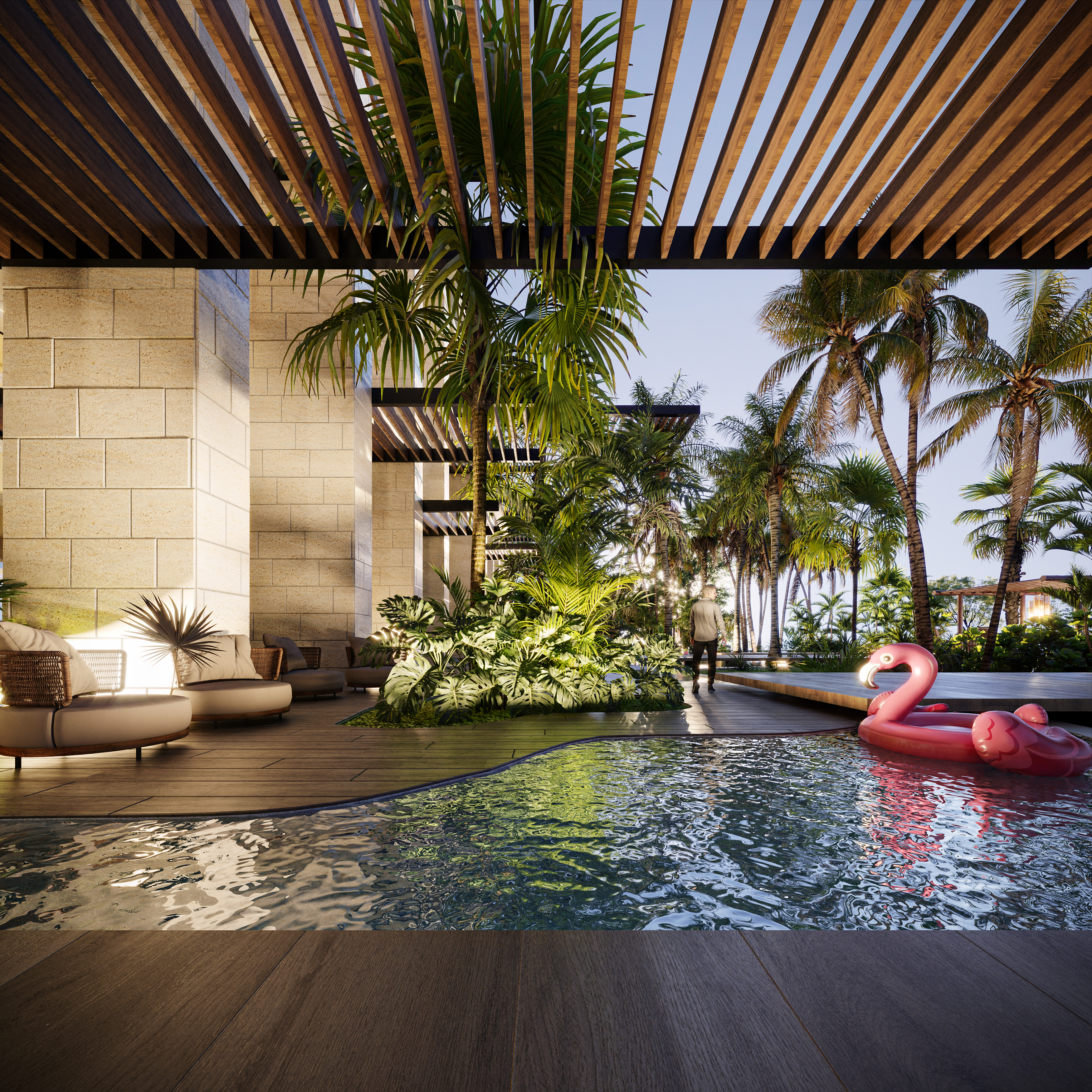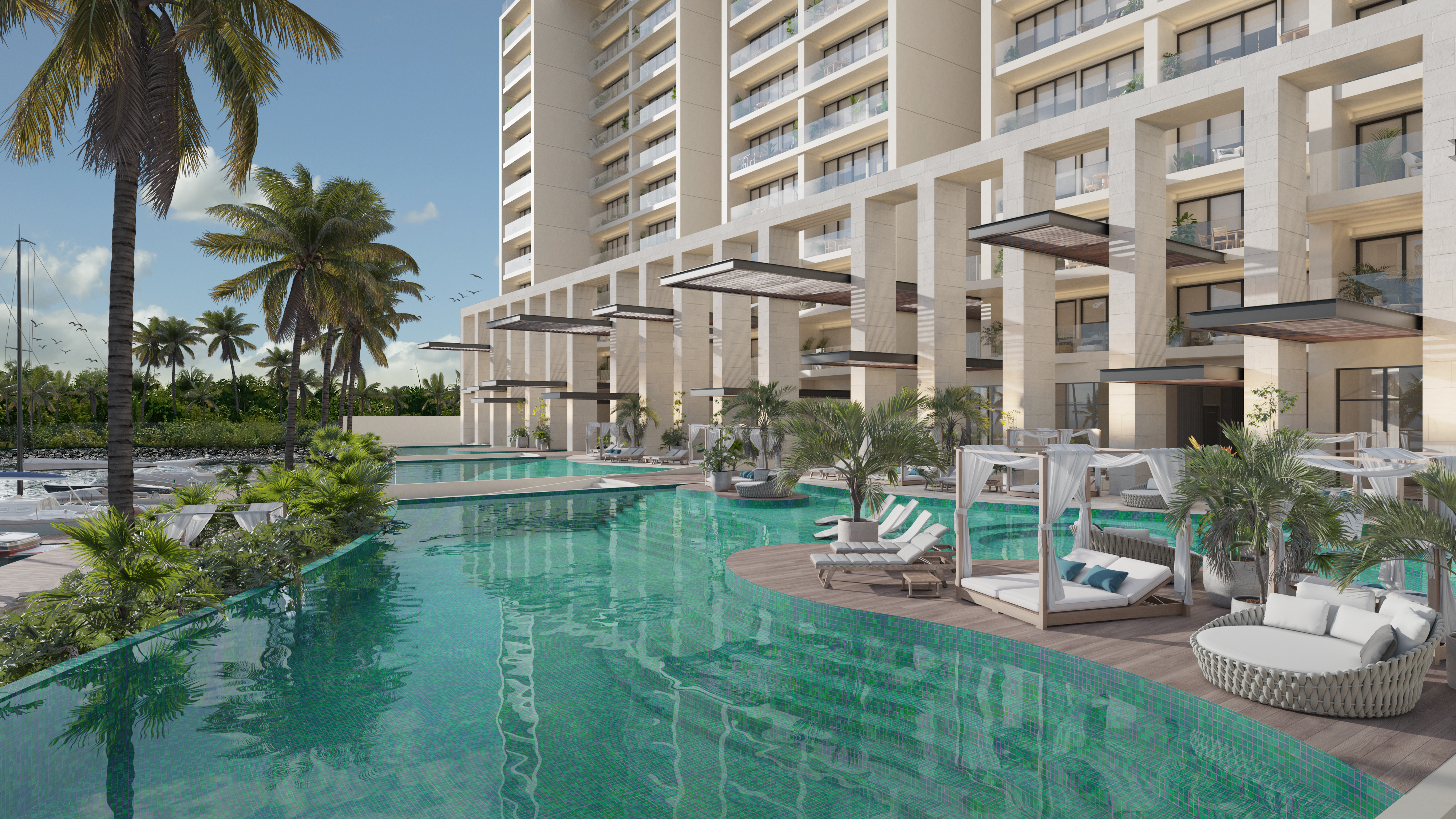Muelle privado Rooftop con una vista increíble Albercas y asoleadero Gimnasio indoor–outdoor Canchas de pádel y tenis Restaurante Coworking Kids club Simulador de golf Sky bar y sky kitchen Salón de eventos Terraza *Los precios pueden cambiar sin previo aviso.