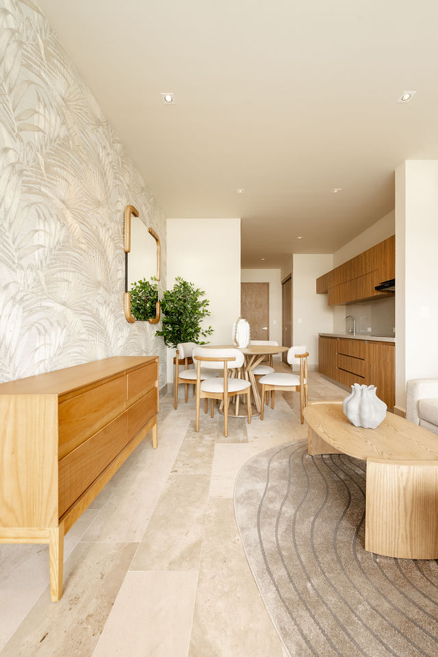 7,110,300 MXN Distrito Norte Cozumel (317) Distrito Norte Cozumel es un proyecto residencial contemporáneo ubicado en la zona norte de la isla, una de las áreas con mayor crecimiento por su cercanía al aeropuerto internacional. Combina diseño moderno, amenidades completas como alberca, gimnasio, cine, cancha de pádel y áreas sociales, con una ubicación estratégica que ofrece tranquilidad residencial sin perder conectividad con el centro y la costa. Es una opción muy atractiva tanto para vivir como para invertir, ya que Cozumel mantiene una demanda sólida de renta y un mercado estable, ideal para quien busca plusvalía con menor saturación y un estilo de vida auténtico de isla. El departamento: El departamento de 2 recámaras tiene la combinación perfecta entre confort y estilo de vida caribeño. Esta propiedad integra acabados de lujo, luz natural abundante y un concepto abierto que conecta sala, comedor y cocina con un balcón privado en esquina, permitiendo disfrutar de vistas a las amenidades.