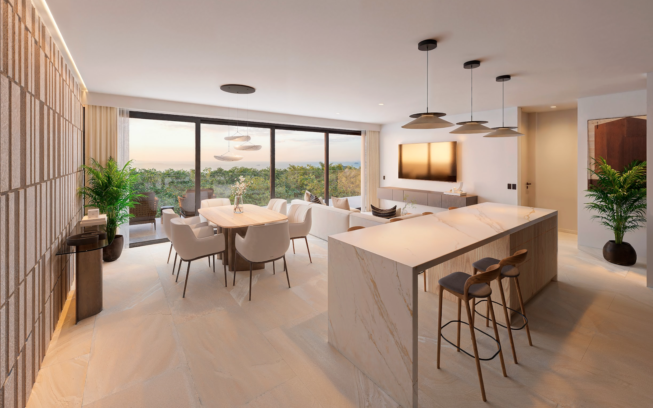Club de playa privado Alberca estilo resort y jacuzzi al aire libre Canal de nado de 25 m Áreas sociales recreativas Coworking Wellness center Gimnasio Tiendas Cafeteria Bar de autor Restaurantes Área de deportes Parque acuático *Los precios pueden cambiar sin previo aviso.