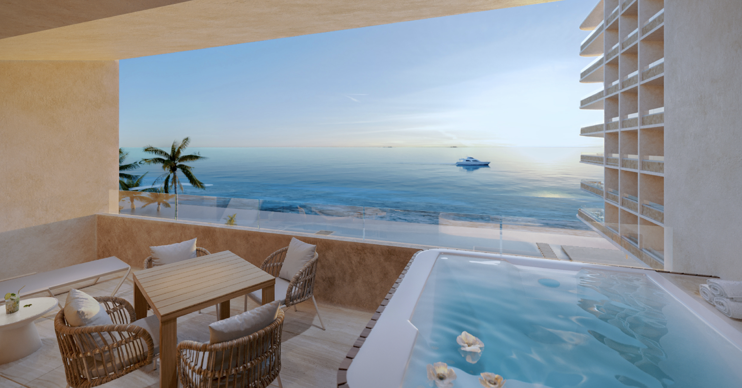 -Lobby con recepción profesional que eleva la experiencia de los propietarios desde su llegada -Alberca con club de playa tipo resort como principal atractivo visual y de estancia -Restaurantes gourmet en planta baja y roof top, que permitirán a los propietarios gozar de una comida o una deliciosa cena con vista al mar -Spa con servicio premium -Gimnasio -Sky Bar *Los precios pueden cambiar sin previo aviso.